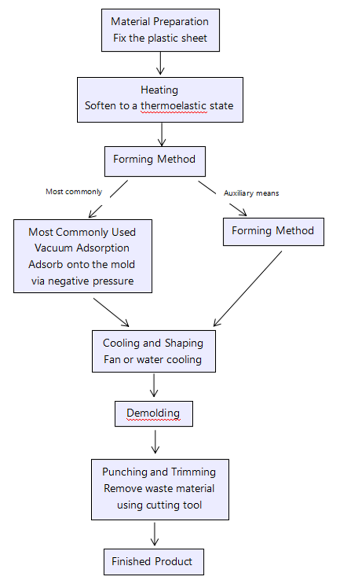 Asosiy printsip: plastik varaqni qizdiring va yumshating, keyin vakuumni mog'or yuzasiga joylashtiring va u sovutishdan keyin shakllanadi.
